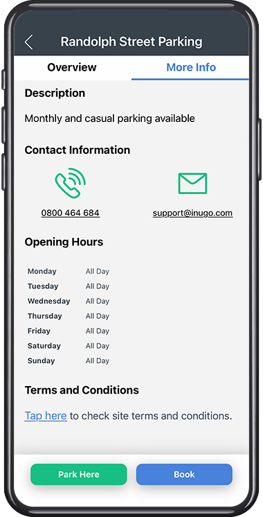Operating hours show when a parking lot is open and accessible to you.